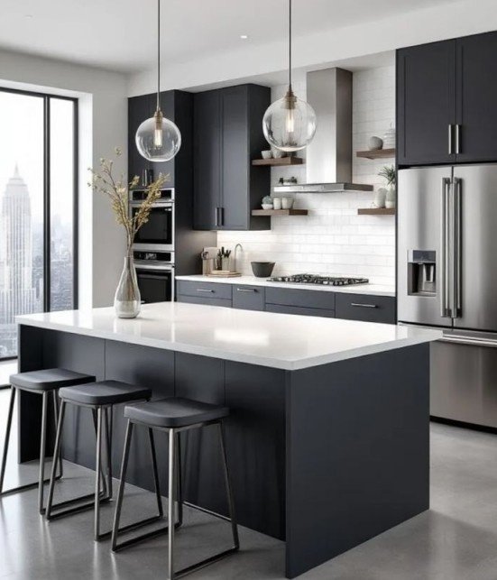 Built-in and modern appliances are seamlessly fitted into your kitchen design. This ensures a clean, organized, and highly functional cooking space.